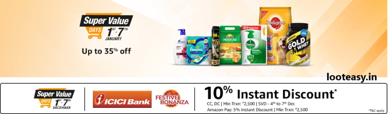 The Amazon Super Value Days Sale starts on the 1st of every month as most people get their salaries on this day. In this sale you can get all daily need items like groceries, household supplies, beauty & personal care or pet supplies at reasonable prices + additional cashback to specific bank account. The sale starts on the 1st of every month and ends on the 7th of every month.